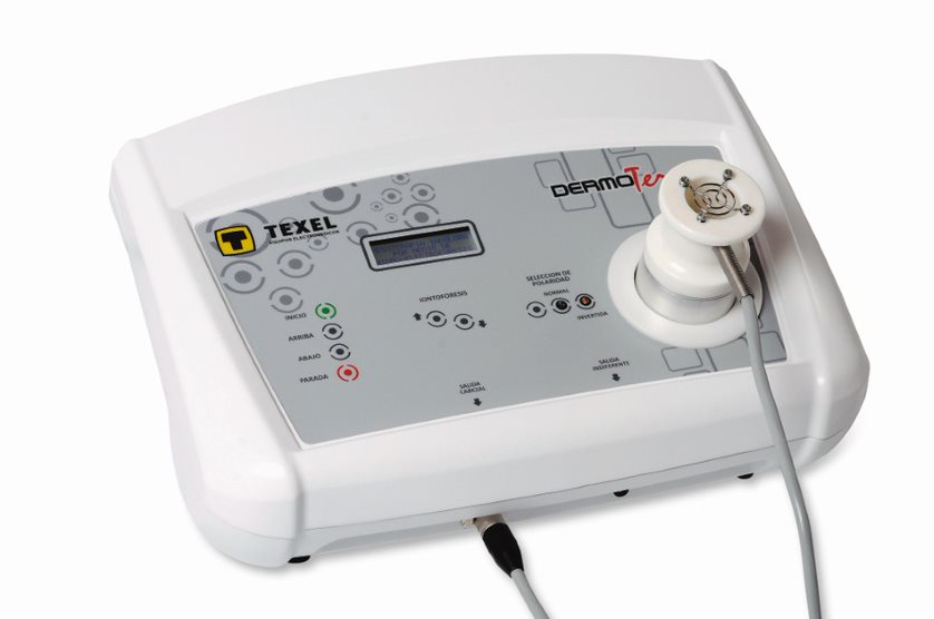 Mesoterapia indolora por medio de crio electroforesis o jeringa virtual. Cabezal que produce frío o calor en combinación con corriente galvánica polarizada automáticamente.